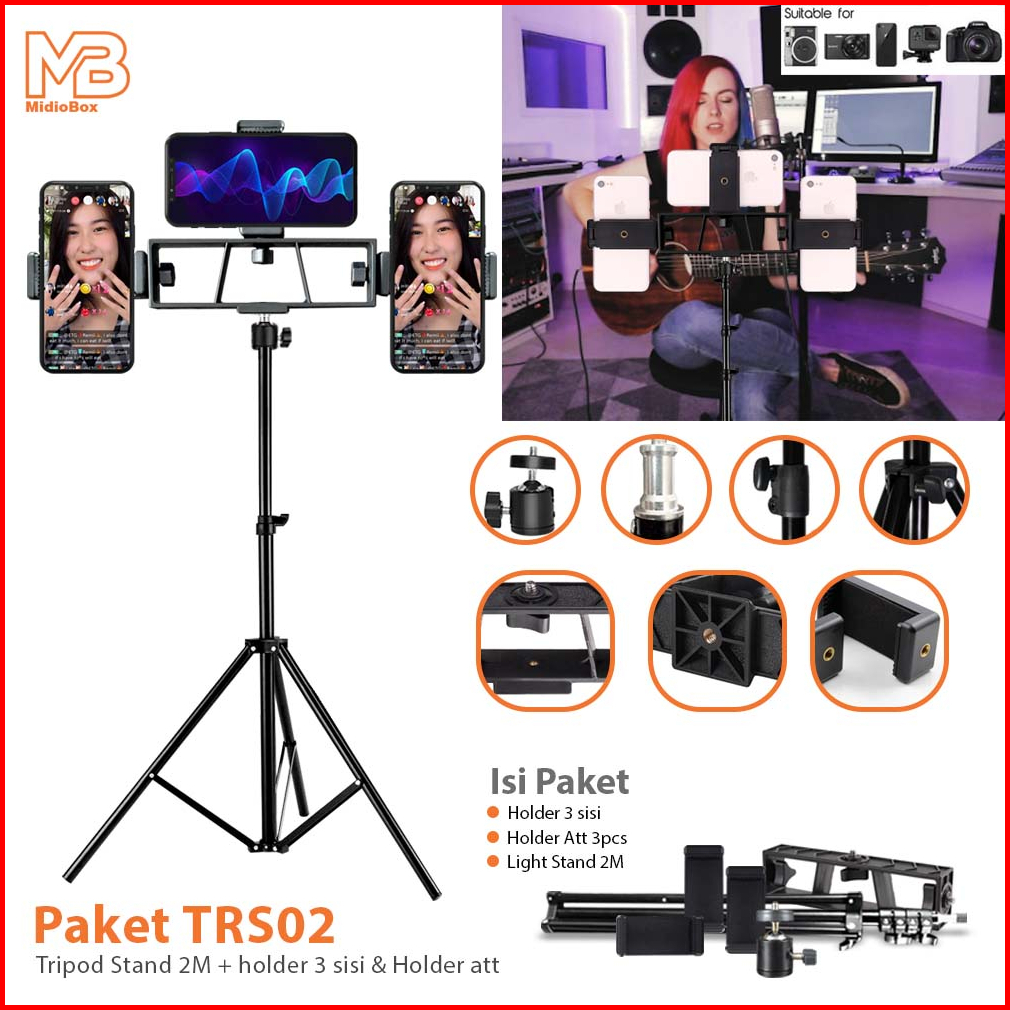 Paket Tripod Stand Trs02 Midio Plus Stand Holder 3 Sisi Dan Holder Att