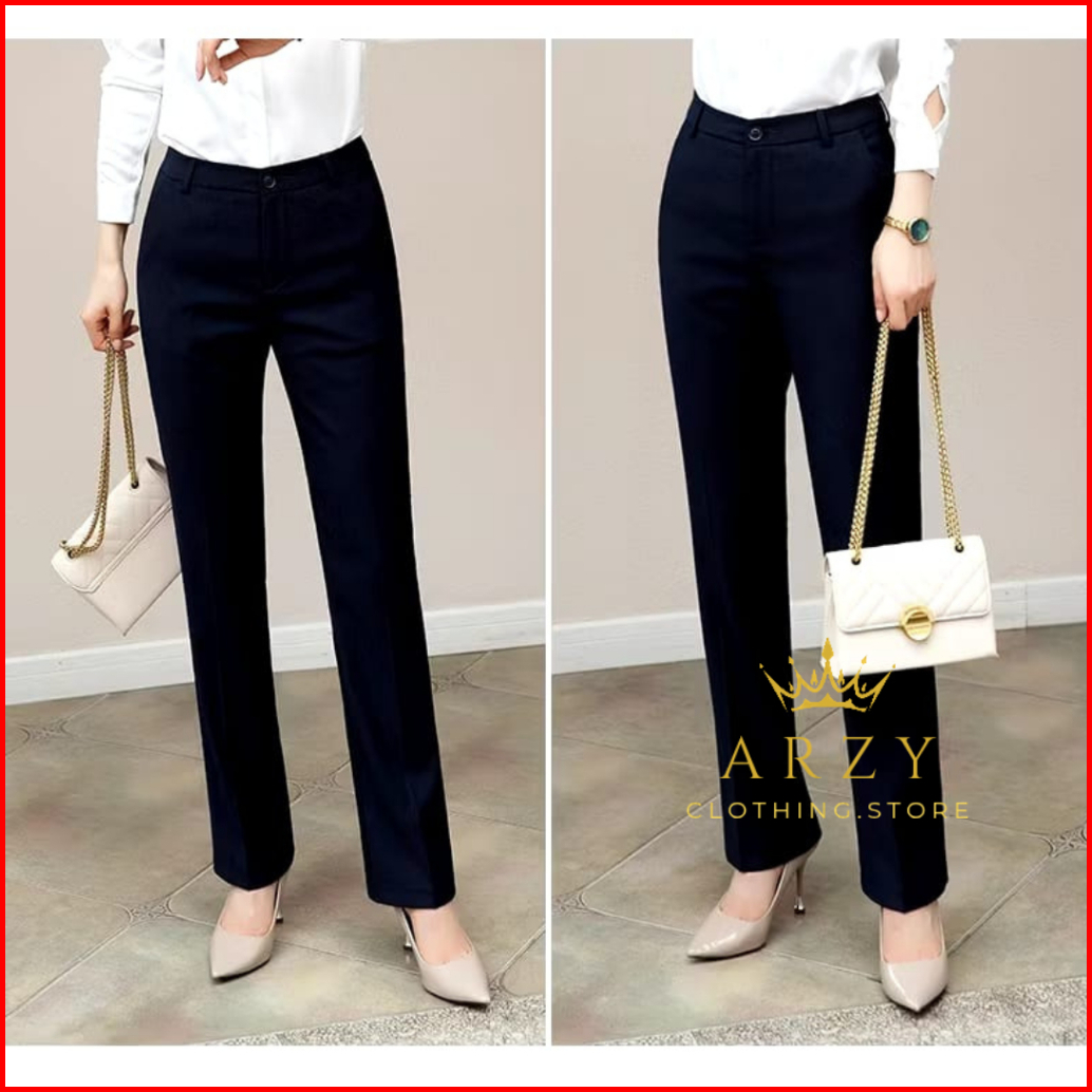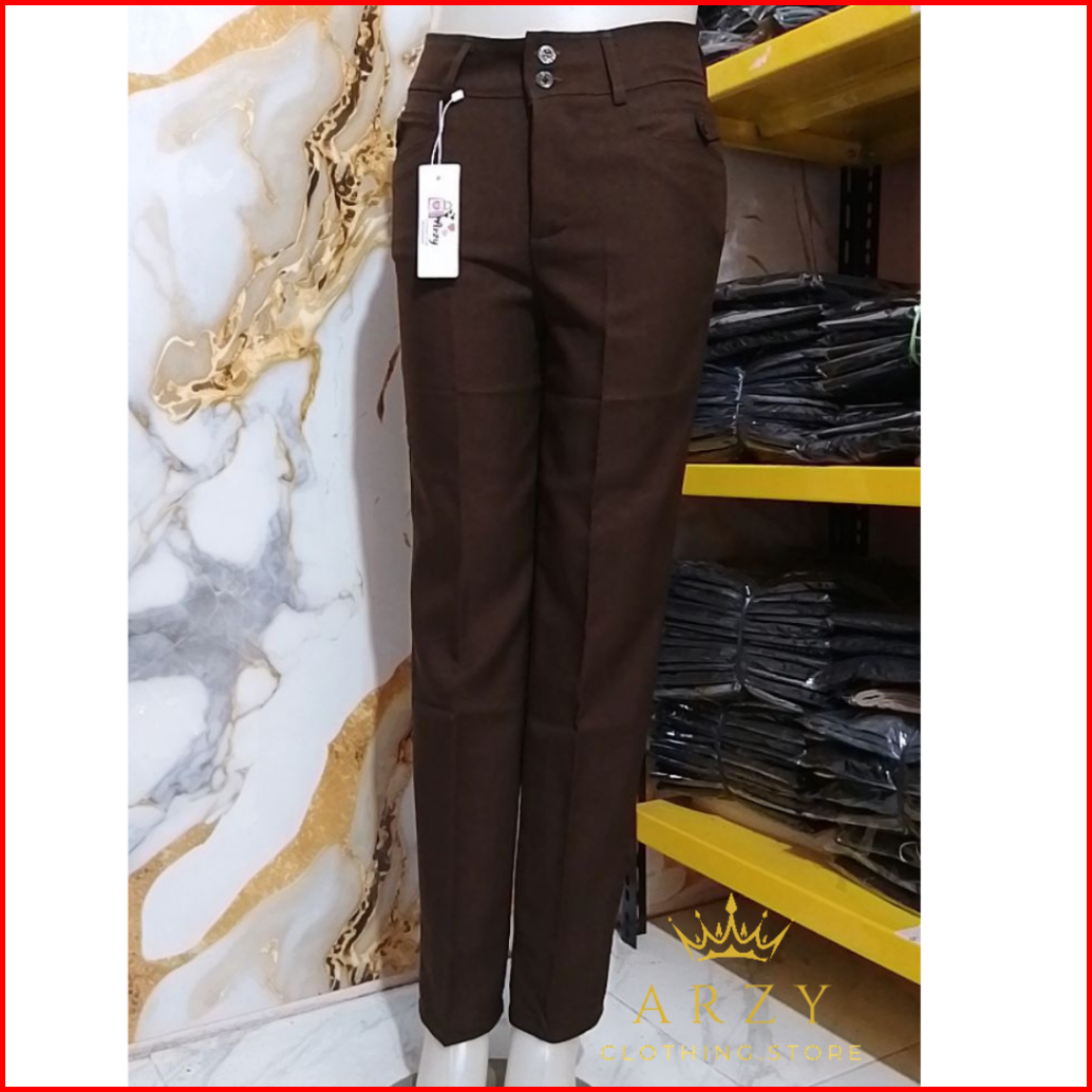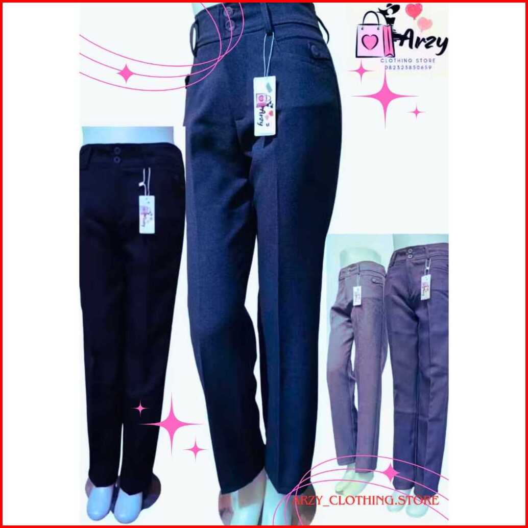 Celana Kerja Wanita Kantor Celana Kain Anti Kusut Model Resleting Kancing Bahan Semiwoll Premium