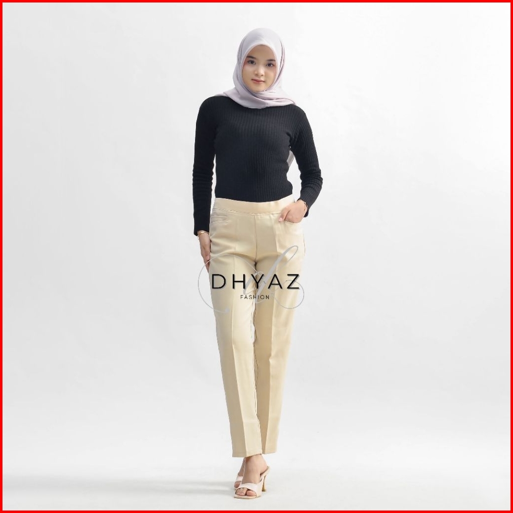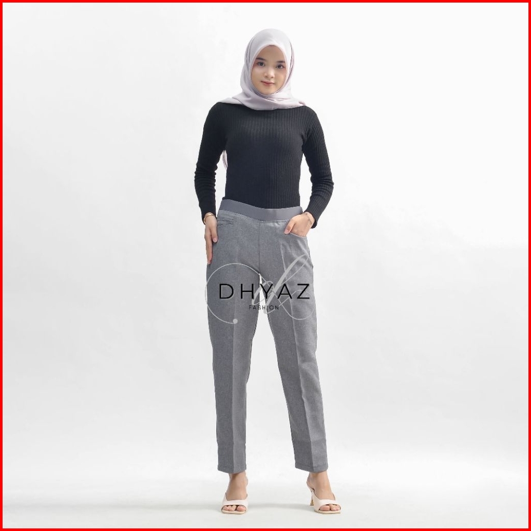 Celana Kerja Wanita Pinggang Karet Slimfit Celana Panjang Kantor Wanita Anti Kusut Nyaman Semi Woll