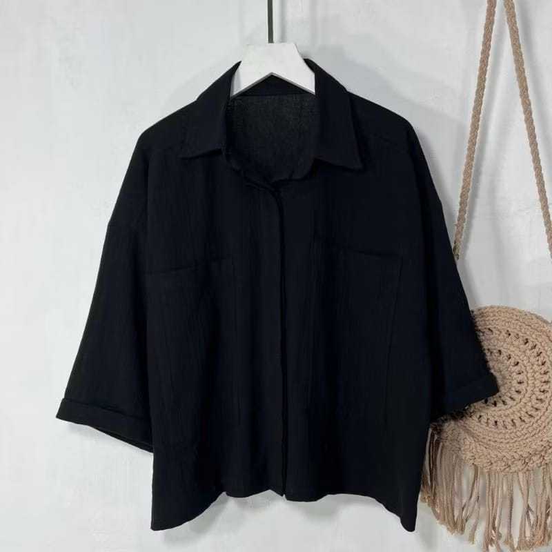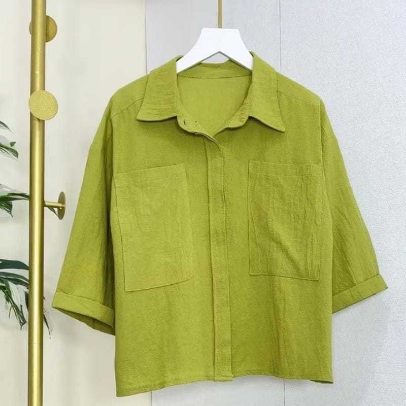 KEMEJA PENDEK WANITA Cozie Zaraa Kemeja Wanita Crop Top Saku 2 Zavil bahan lembut lengan pendek
