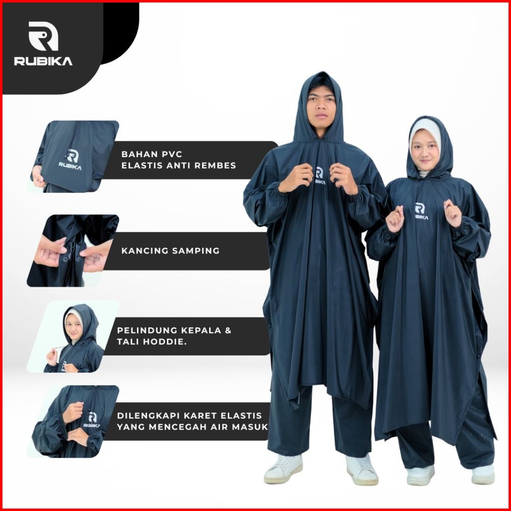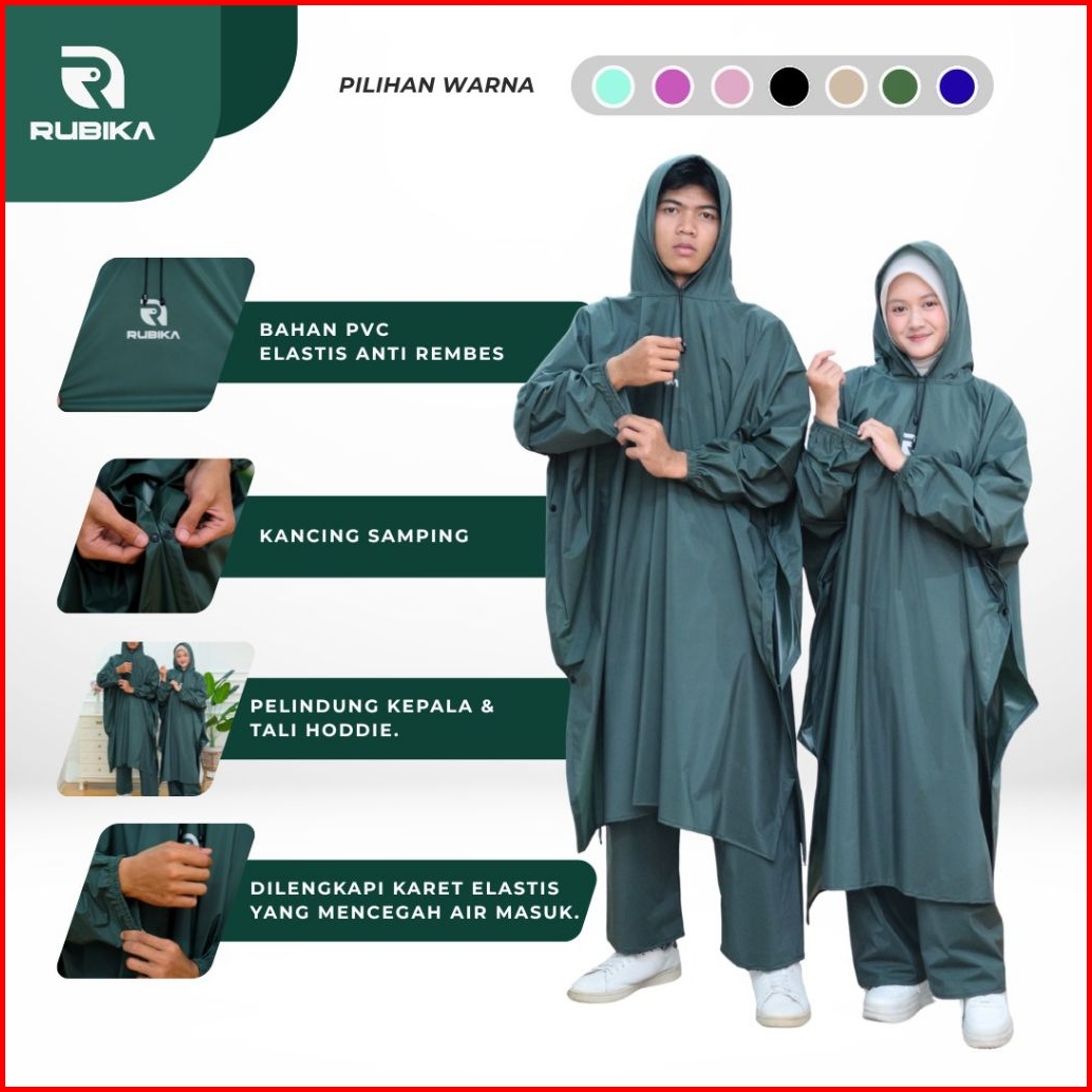 Rubika Jas Hujan Ponco Dan Stelan Ponco Celana Mantel Hujan Kelelawar Bahan Pvc Tebal Elastis Berkualitas Termurah