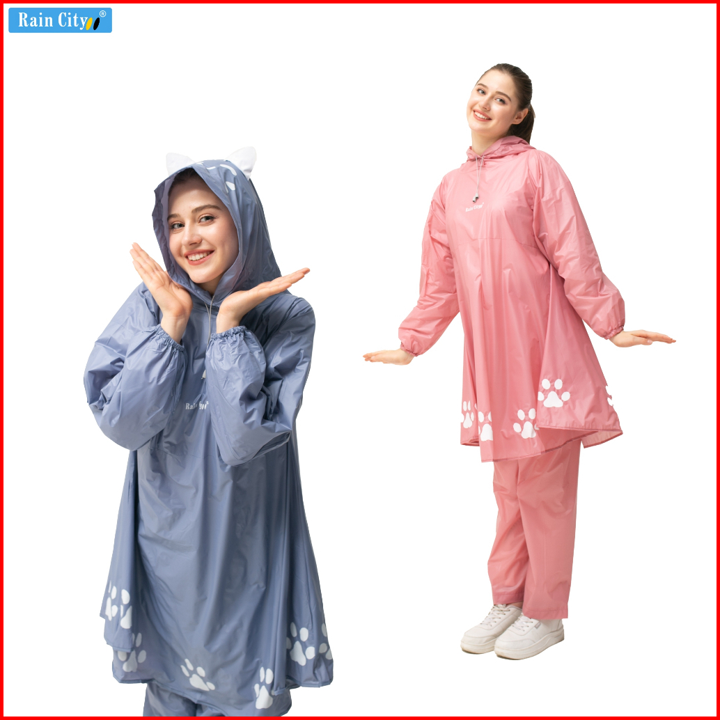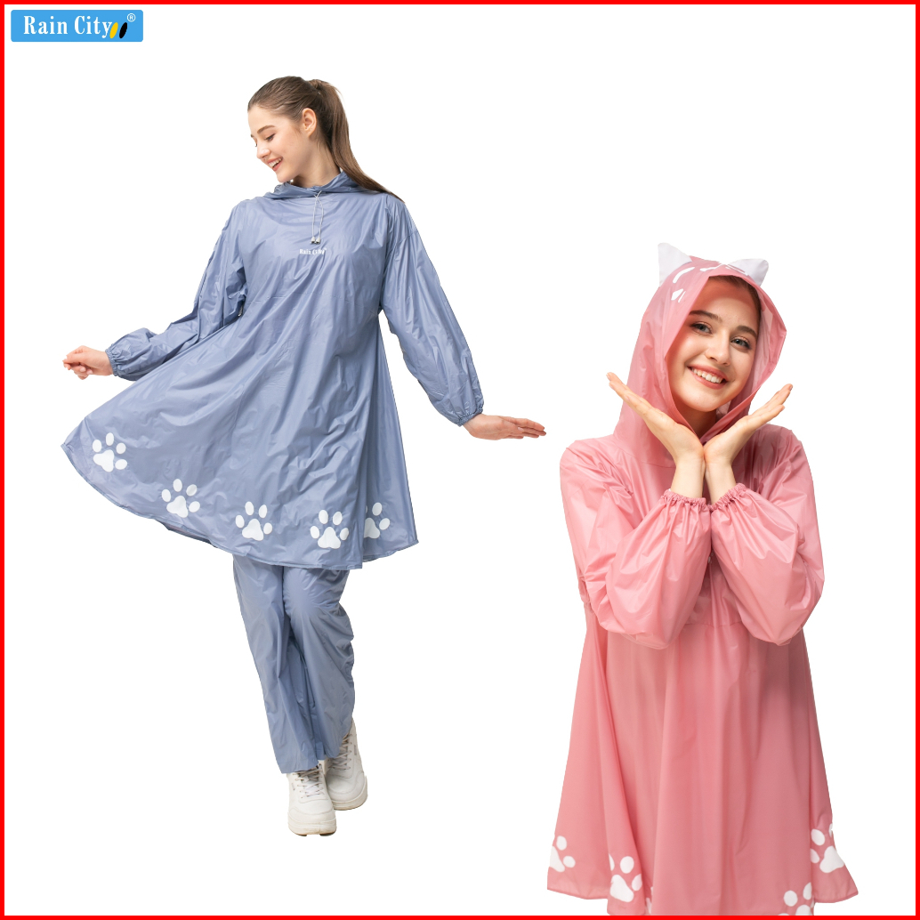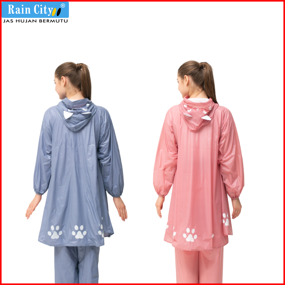 Rain City Jas Hujan Poncho Celana Kitty Aesthetic Lucu Pink Pastel Pvc 70073 Anti Rembes
