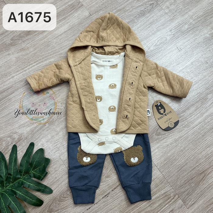 Setelan Jaket Hoodie, Bodysuit, Celana Bayi Perempuan Dan Laki Laki Premium Quality - A1674 Hudi Sage Lion, 0-3 Bulan