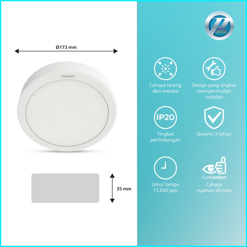 Lampu Philips 17w W 17 Watt 22w 22 Watt Watt Led Downlight Eridani Round Surface Outbow Bulat Dl190b - Warna Putih Kunin