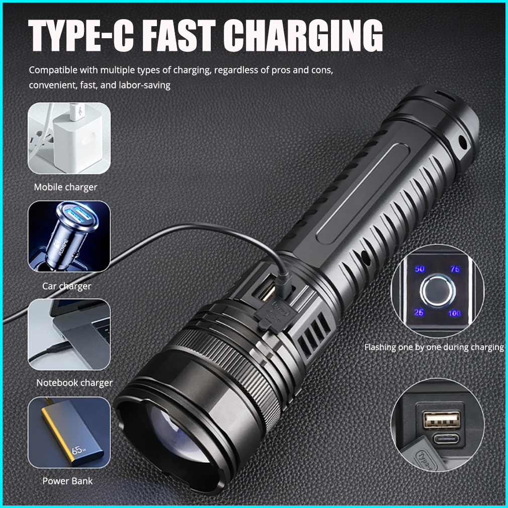 Anbolt-toko Bendera Senter Super Terang Jarak Jauh 150000 Lumens Ori Usb C Rechargeable Zoomable Senter Laser Putih Led