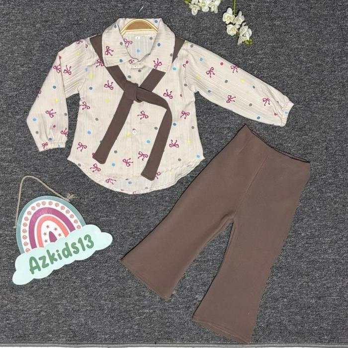Oneset Lorenza Koreanstyle 2-10Thn Anak Perempuan Celana Cutbray Highwist Fashion Cewek - Cream Late, 2-3Thn