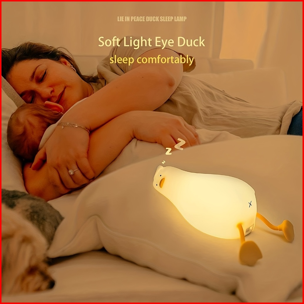 Bebek Dipimpin Lampu Lampu Malam Kartun Silikon Isi Ulang Menepuk Saklar Anak Lampu Tidur Anak Hadiah Dekorasi Kamar Tid