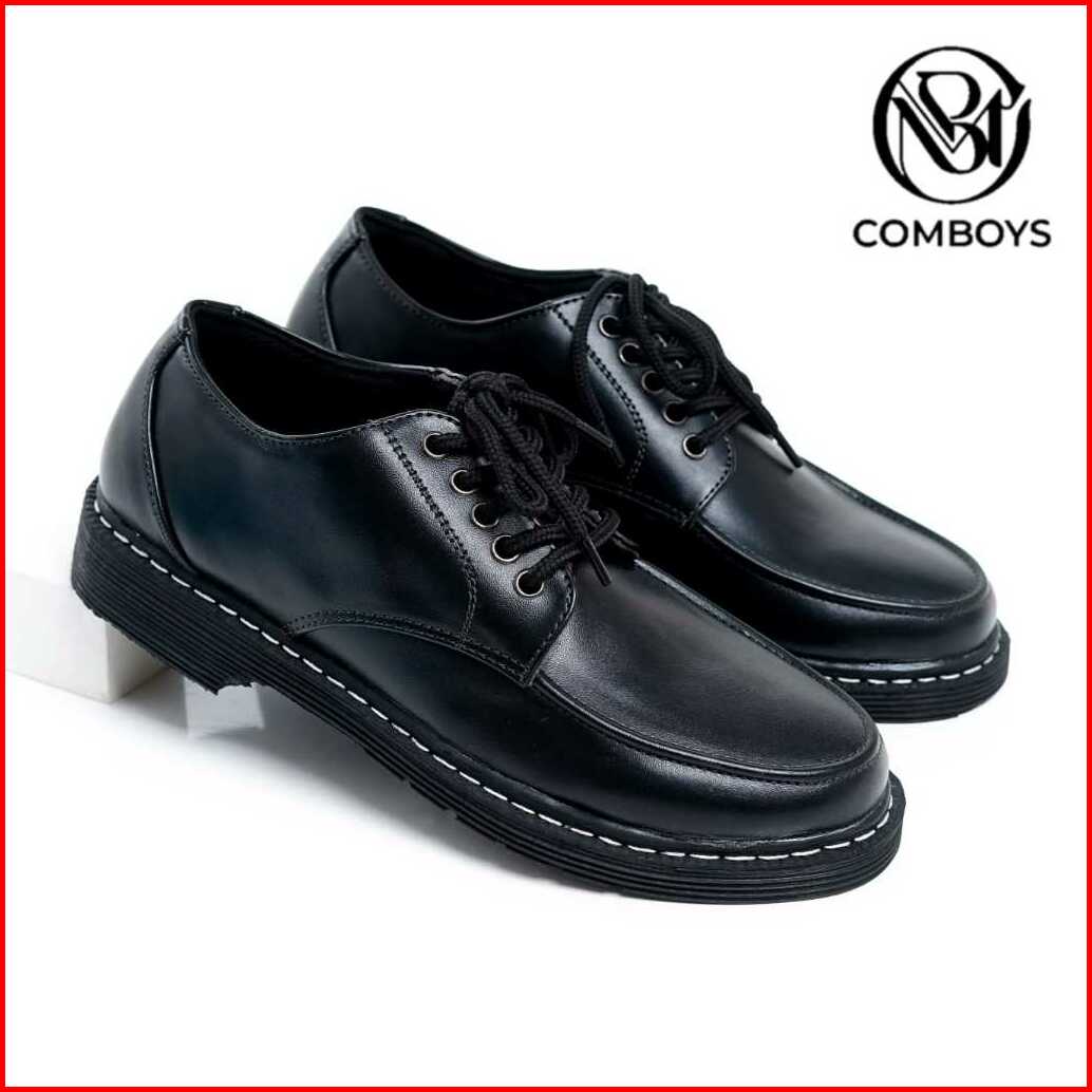 Sepatu Pria Formal Loafers Docmart Comboys Black Kulit Pu Pantofel Kerja Kantoran 01