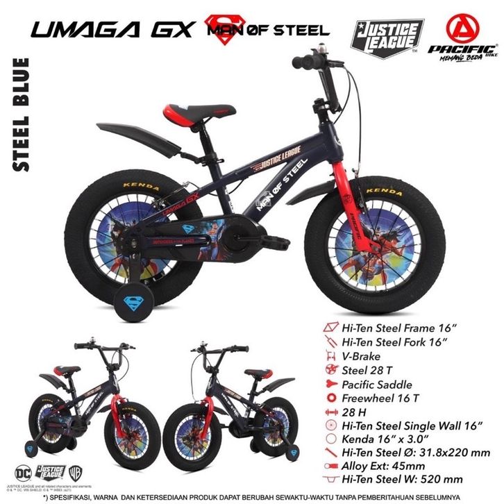 Sepeda Anak Laki BMX Umaga edisi GX JUSTICE LEAGUE Ukuran 16" dan 18" STEEL V-Brake Ban Jumbo 3.0