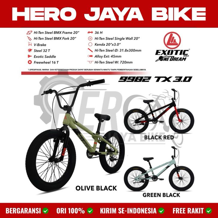 Sepeda Anak Laki BMX EXOTIC ET 9982 TX 3.0 Ukuran 20Inch Ban Jumbo 3.0 Terbaru