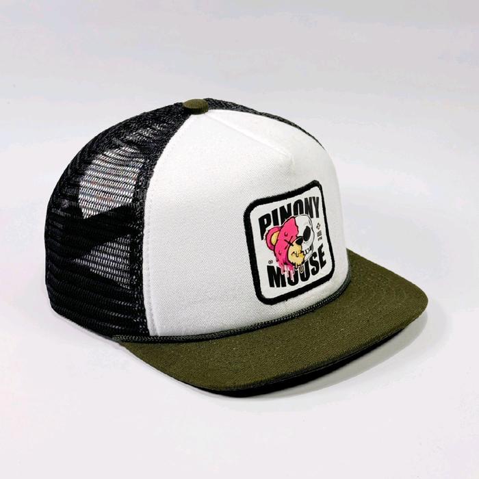 Topi Trucker Hat Patch Visor Pendek Pinonymous Army Putih Hitam - - -