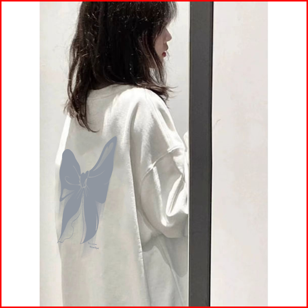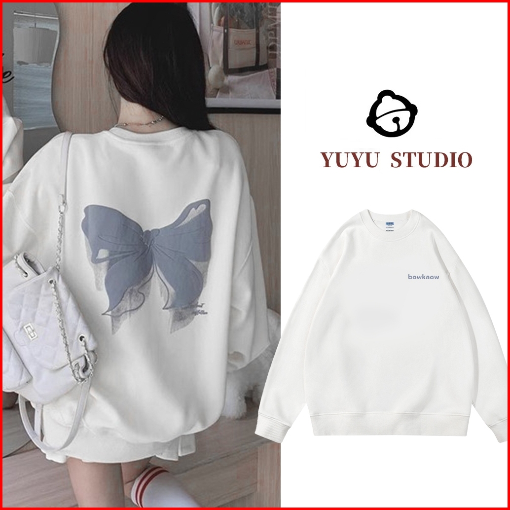Sweater Korea Sweater Kasual Pakaian Wanita Pola Grafiti Kupu-kupu Biru Gaya Baru