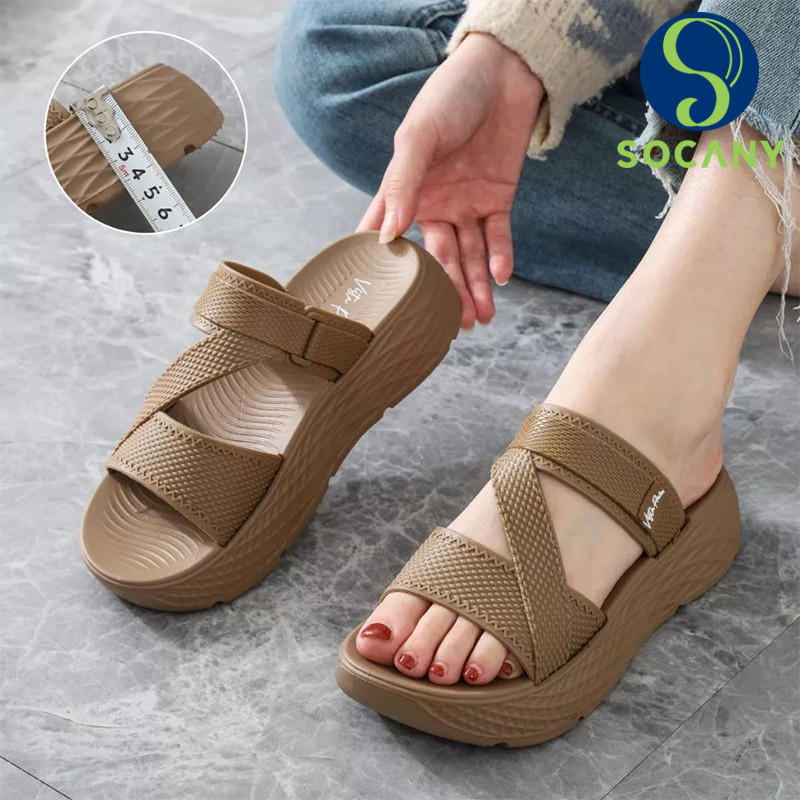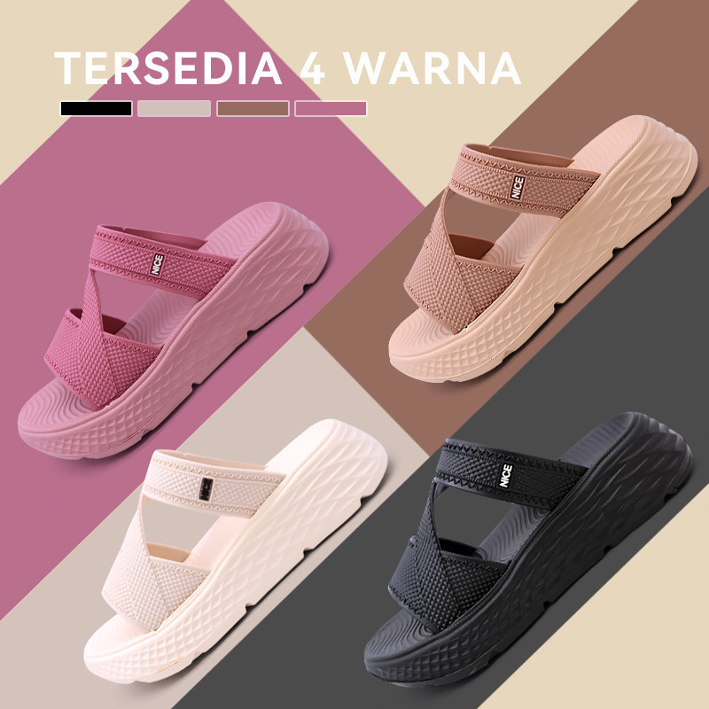 Sandal Slide Wanita Slip On Wedges Kekinian Korean Style Terbaru