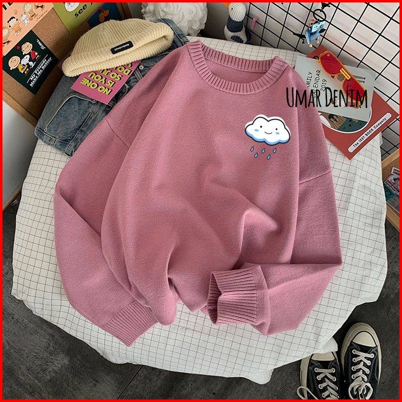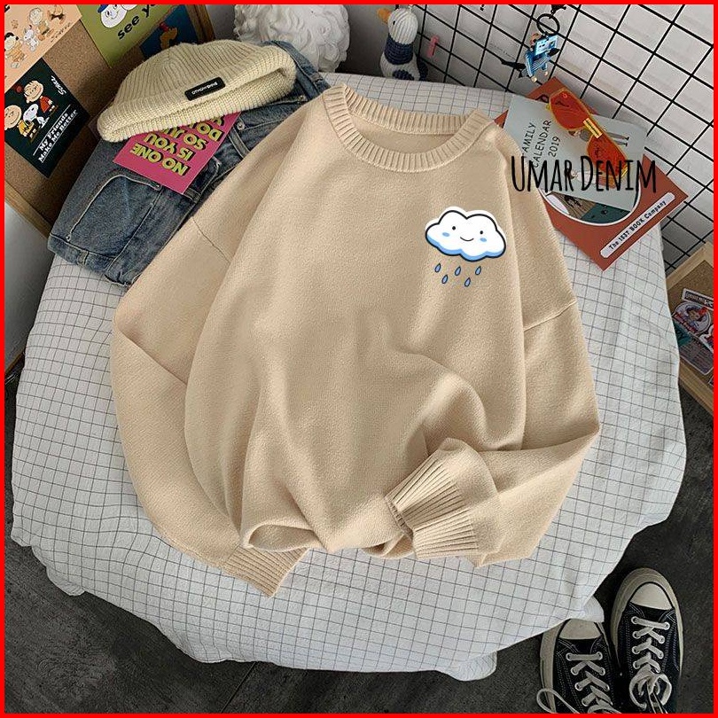Sweatshirt Cewek Motif Awan Simpel Sablon
