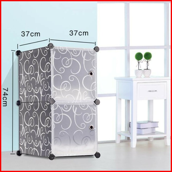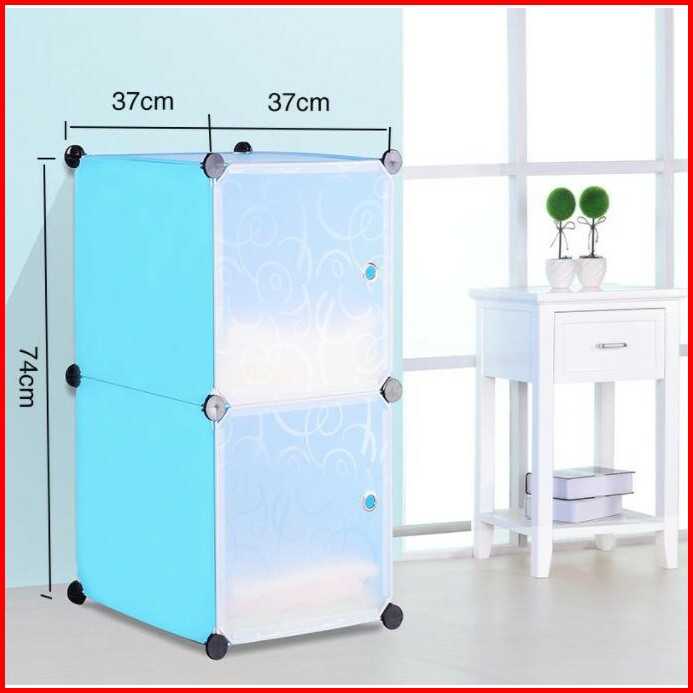 Lemari Pakaian Rak Serbaguna Susun Lemari Plastik Lemari Baju Rak Buku Toys Anak 2 Pintu Susun Kotak