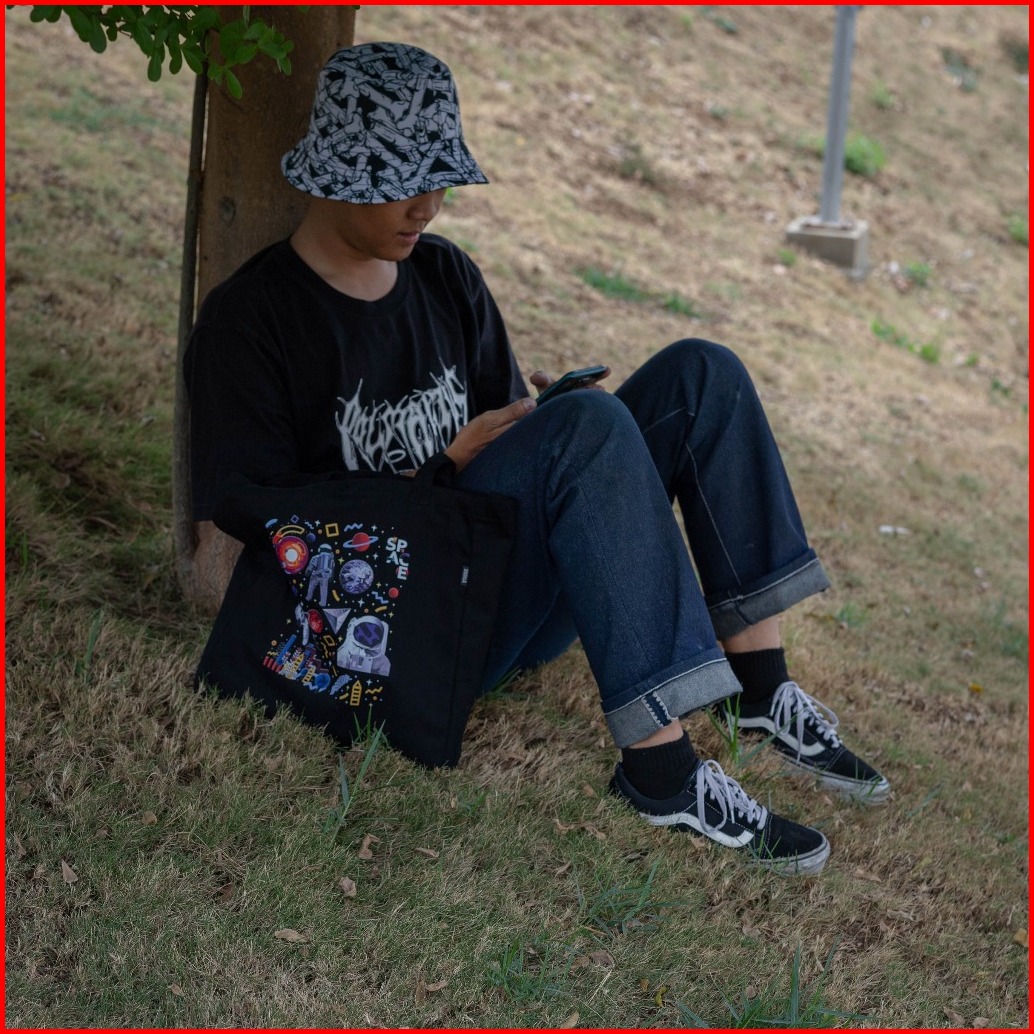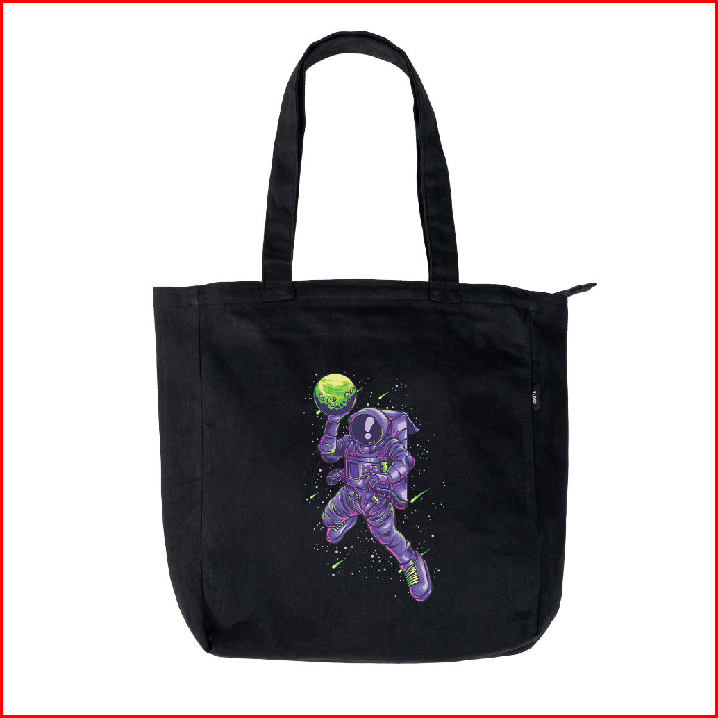 Flade Studios Totebag Kanvas Hitam Resleting - Tas Kuliah Pria Wanita - Astronaut Series