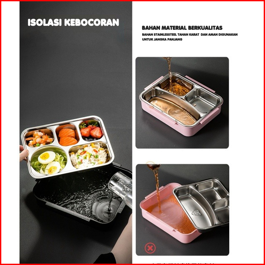 Yohome - Lunch Box Kotak Makan 3 Sekat 4 Sekat 5 Sekat Stainless Steel Lunch Box Stainless Tahan Panas Dan Anti Tumpah