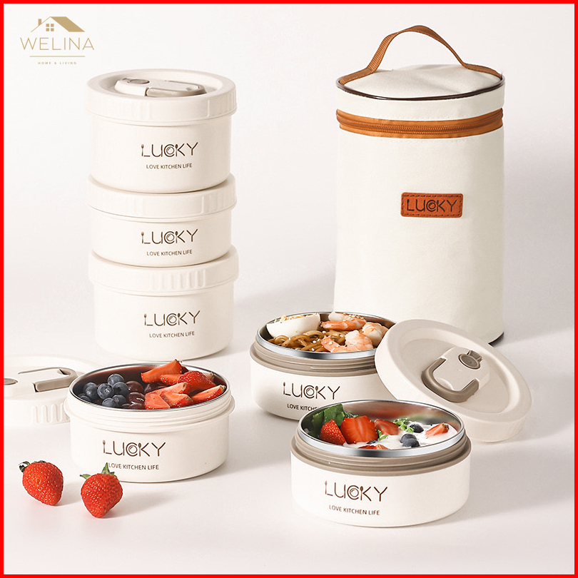 Welina Lunch Box Container Wadah Bekal Portable Stainless Kedap Bulattahan Panas Kotak Makan