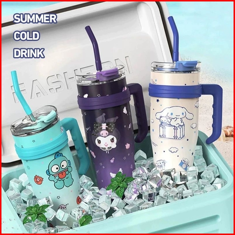 Botol Minum Stainless Sanrio Tumbler Sanrio Sedotan Stainless 1200ml Gelas Handle