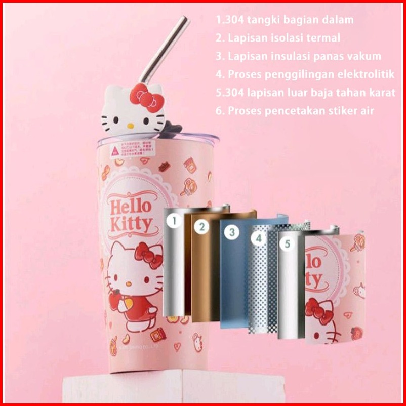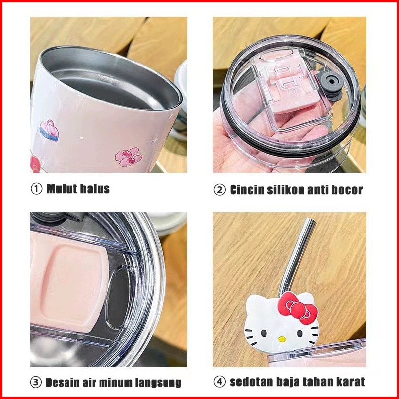 Tumbler Sanrio Dengan Sedotan 600ml Kuromi Cinnamoroll Melody Hellokitty 304 Botol Minum Stainless
