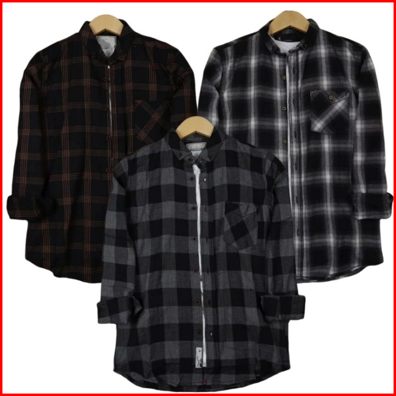 Kemeja Pria Lengan Panjang Flanel Motif Kotak Kotak Premium Import Original 100