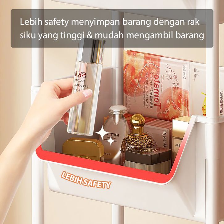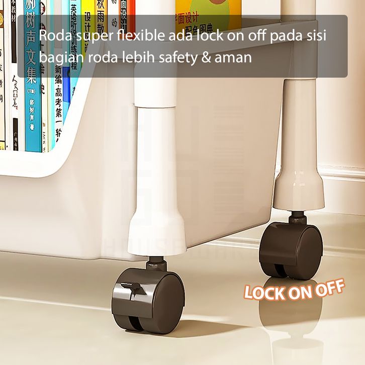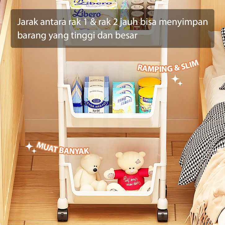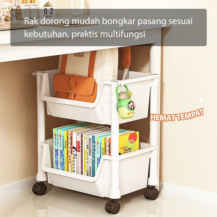 HUGO Rak Dapur Dorong Rak Buku Plastik Serbaguna Rak Troli Toilet Kamar Mandi Susun dengan Roda
