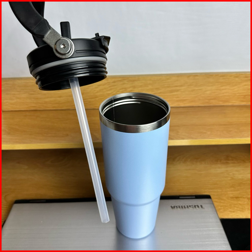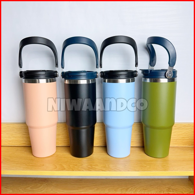 Termos Tumbler Dengan Sedotan Lipat Handle Jumbo Stainless Steel Vacum Insulated 900ml