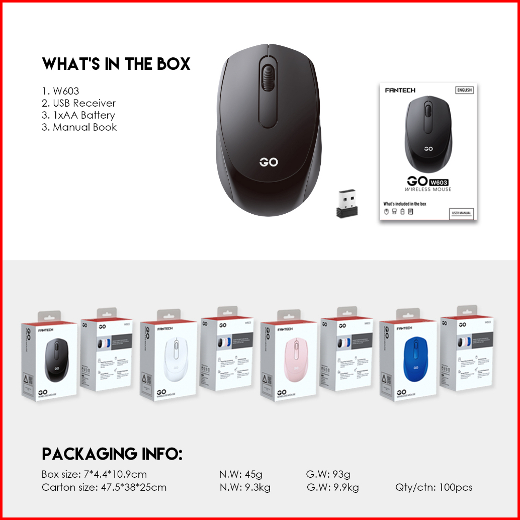 Mouse Wireless Office Fantech Go 2.4ghz 1600dpi