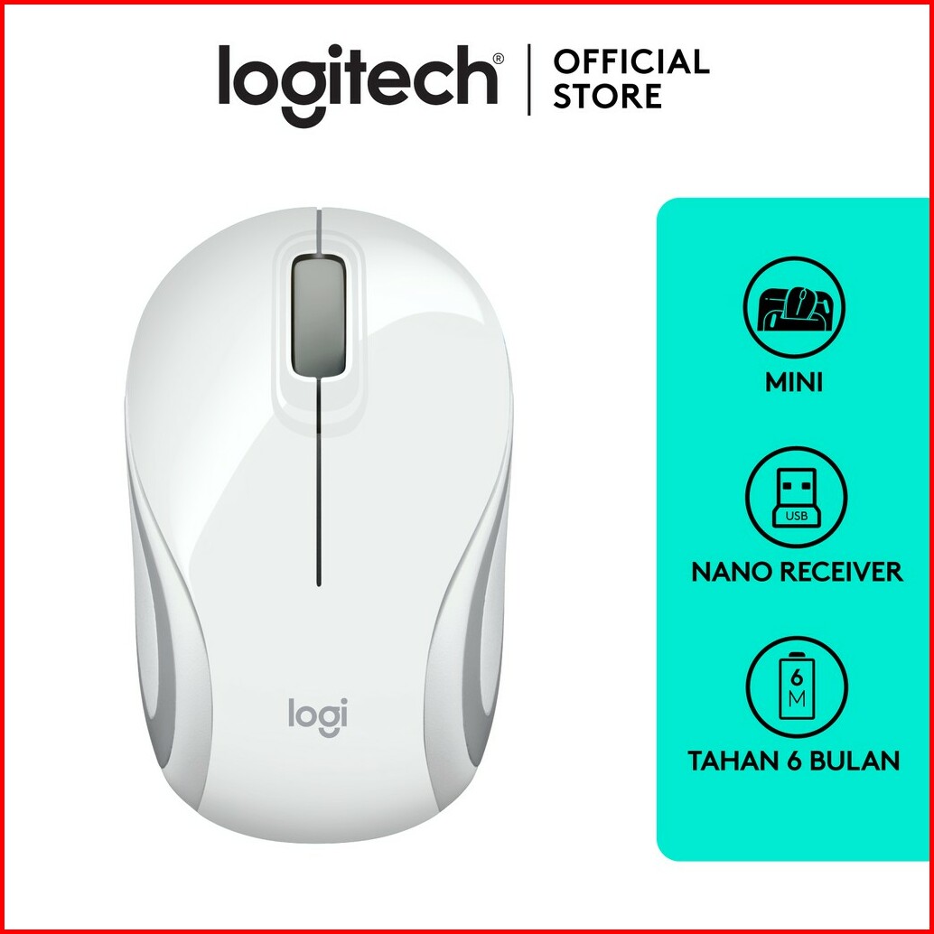 Logitech M187 Mouse Wireless Mini Portable - White
