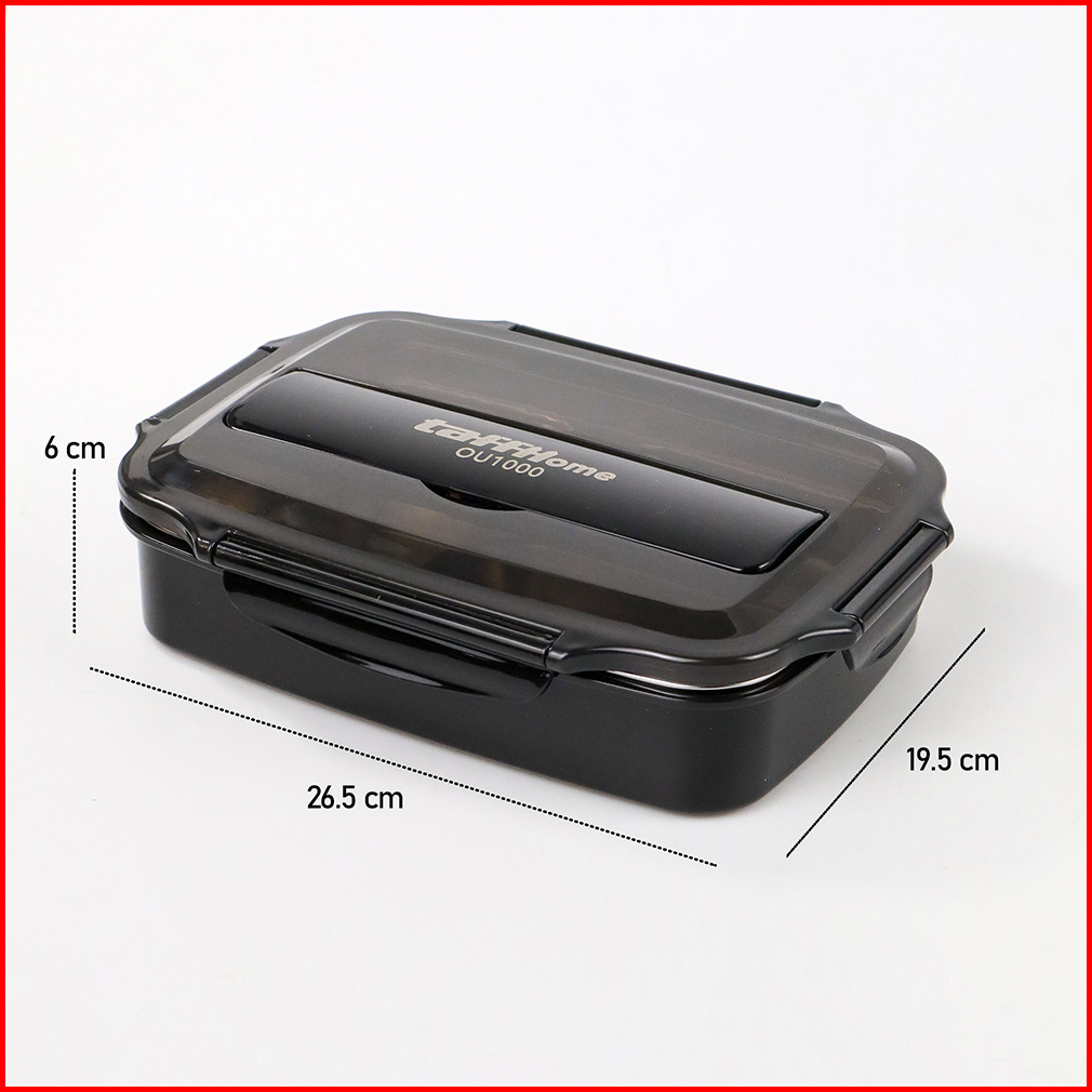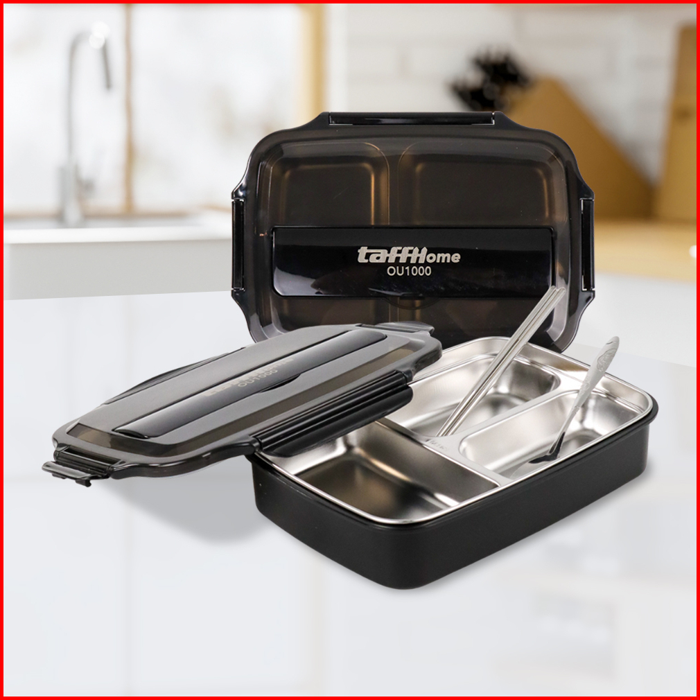Kotak Makan Bento Box 3 Grid 1000ml With Spoon Chopstick - Black