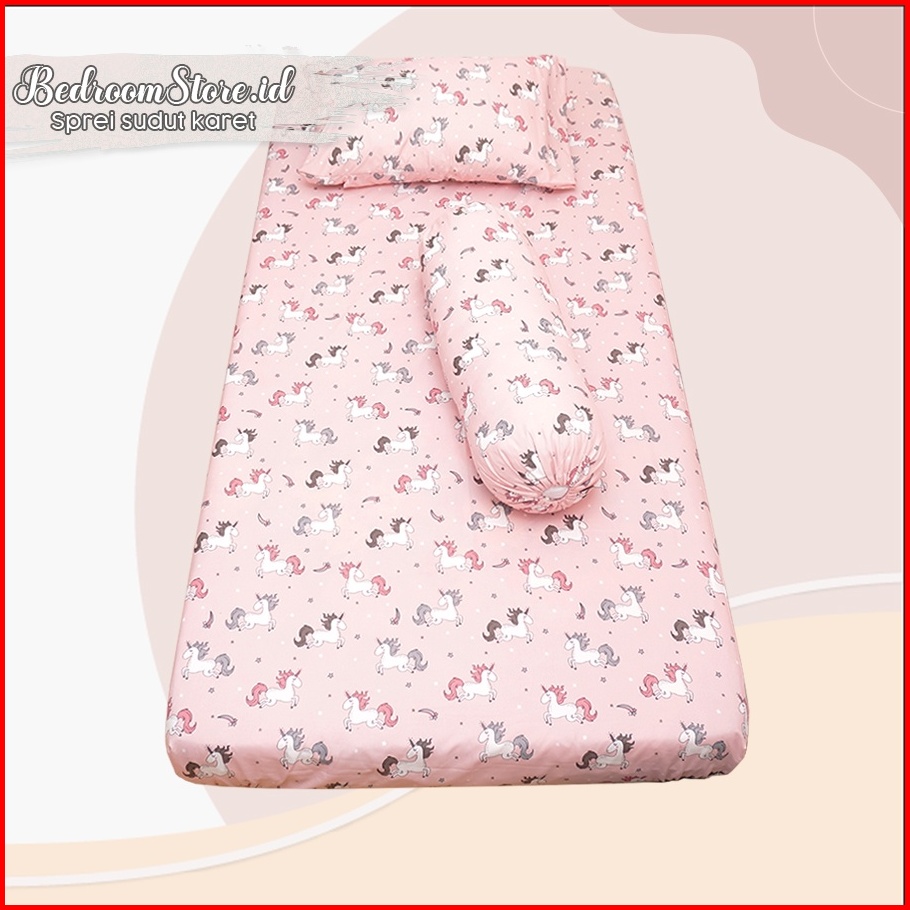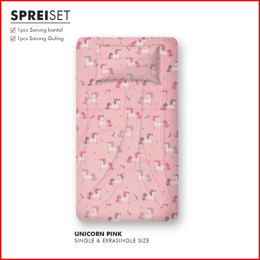 Sprei Aesthetic Motif Unicorn Pink Ala Korea Sudah Termasuk Sarung Bantal Guling