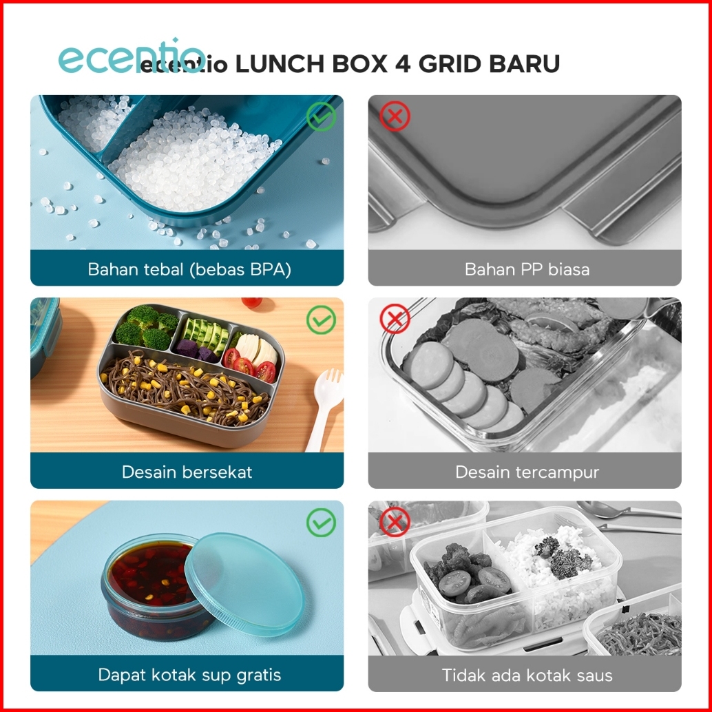 Ecentio Lunch Box Set Kotak Bekal Anti Tumpah Kotak Tempat Bekal 1200ml 500ml Free Sendok Kotak Saus Bpa Free