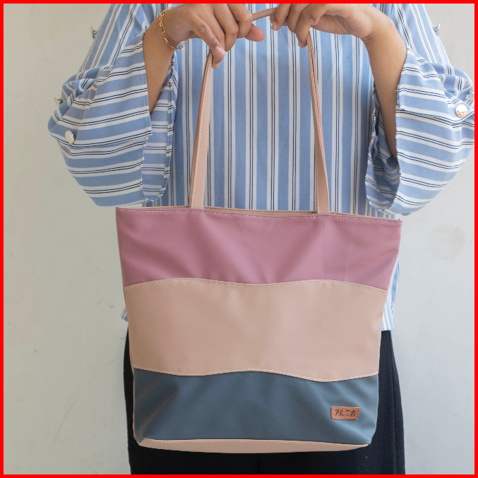 Nijiiroka Tote Bag Wanita Tas Kerja Kuliah Large Shoulder Bag Bahan Sintetis Tahan Air
