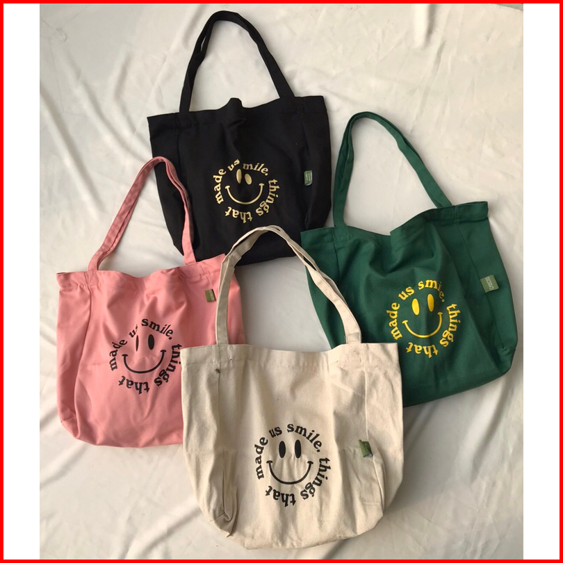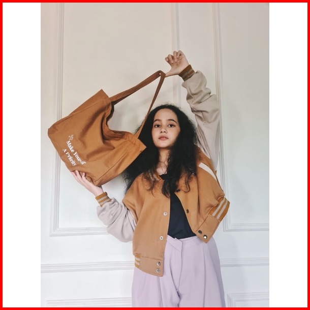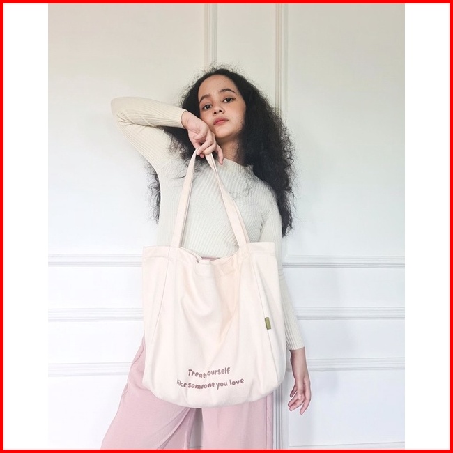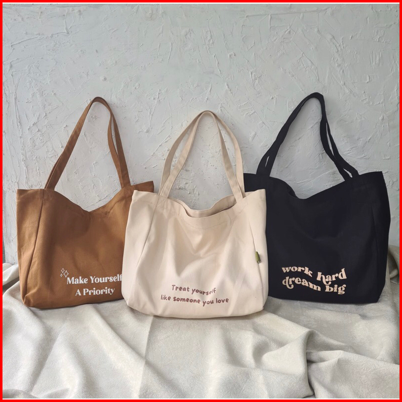 Balo Canvas Tote Bag Resleting Kantong Sablon - Cabiciks