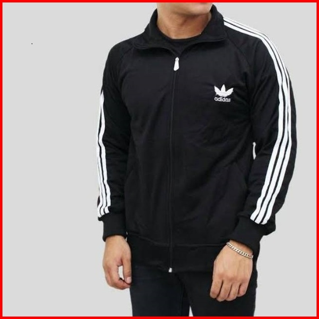 Jaket Adidas Tractop Hitam List Putih Pria Wanita