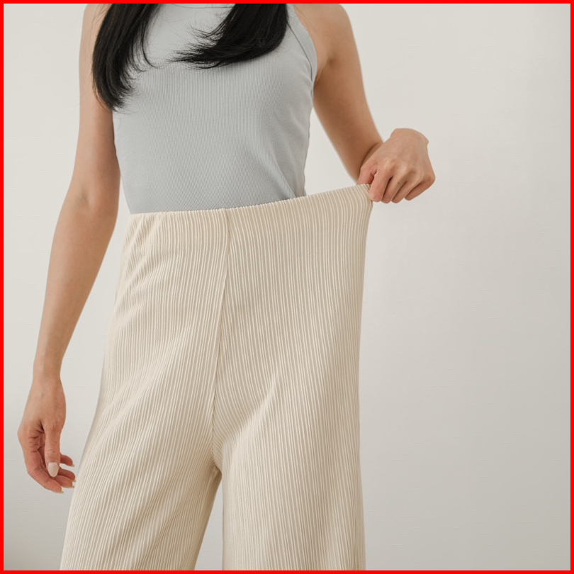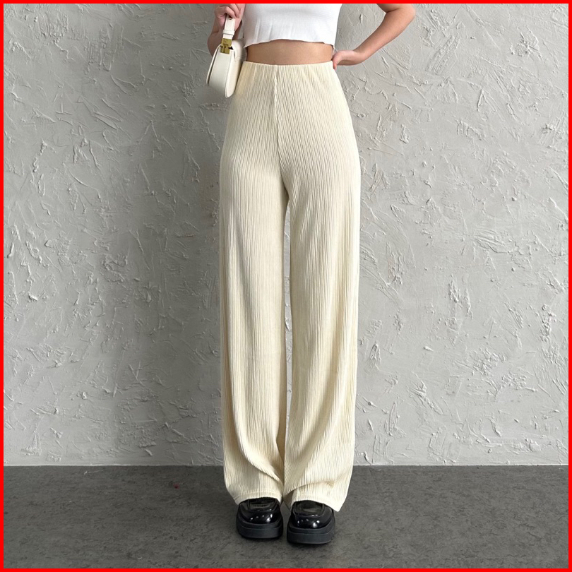Looks - Seine Knit Pleats Pants - Celana Kulot Knit Salur Highwaist Korean Style Premium