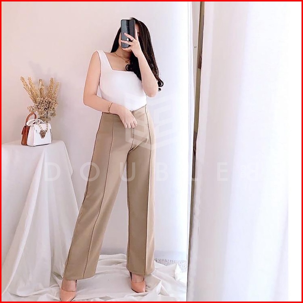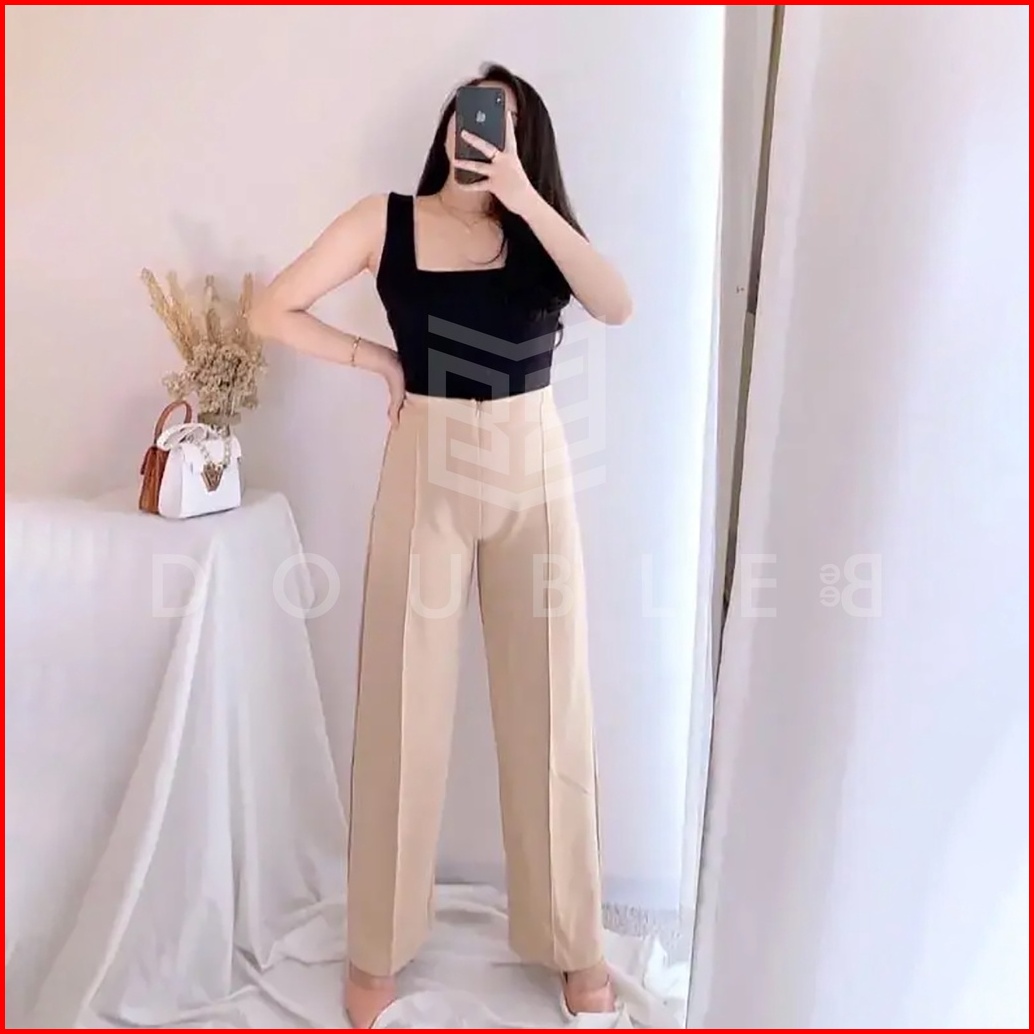 Celana Kulot Highwaist Wanita Jumbo Terbaru Kekinian Viral Korean Style Bahan Scuba Premium Tebal Dan Tidak Nerawang Cel