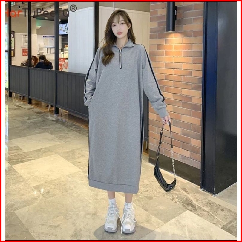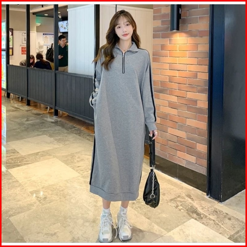 Long Sweater Streep Zip Up Korean Style