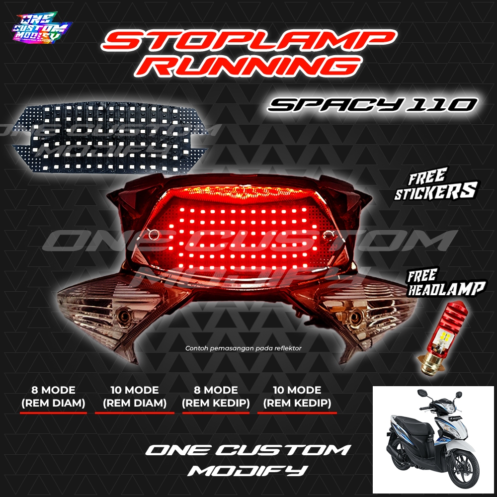 STOPLAMP RUNNING SPACY LAMPU REM LED BELAKANG 8 & 10 MODE VARIASI MOTOR ONE CUSTOM MODIFY