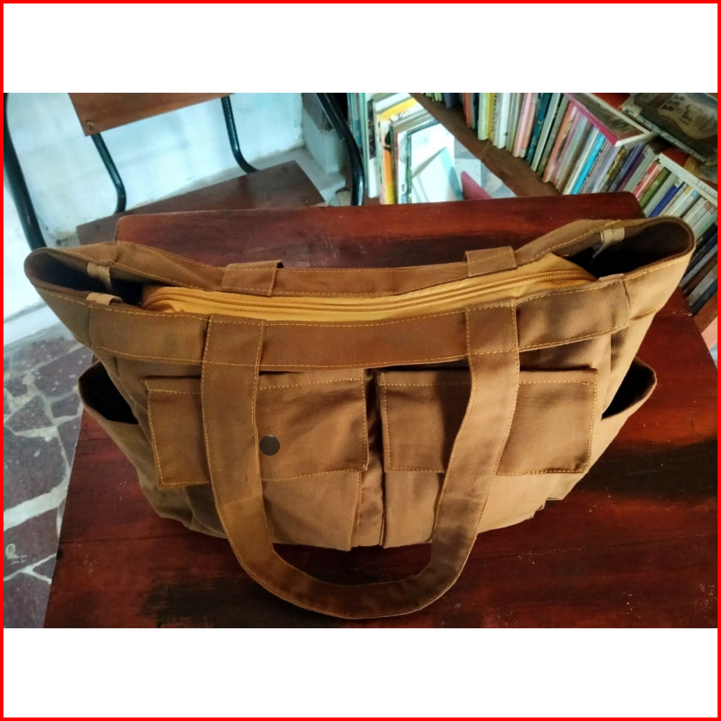 Hibags Tas Tote Bag Resleting Wanita - Tas Bahu Kanvas Kuliah