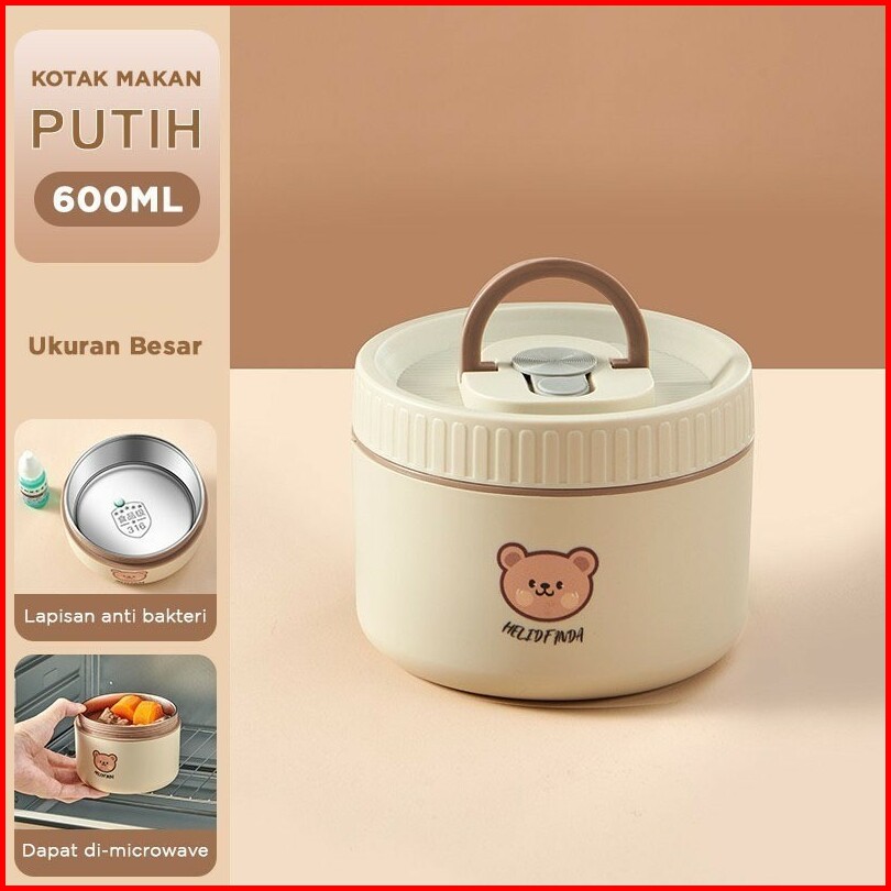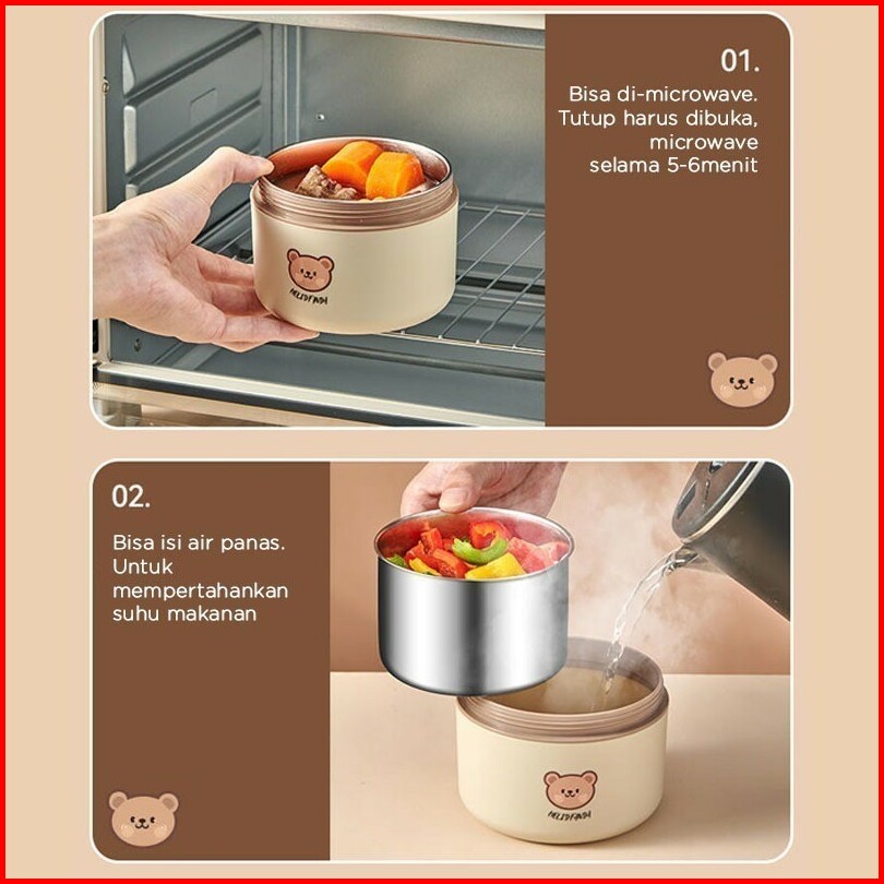 Helidfanda Lunch Box Kotak Makan Anak Bear Termos Sup Dengan Pegangan Stainless Steel - G21504