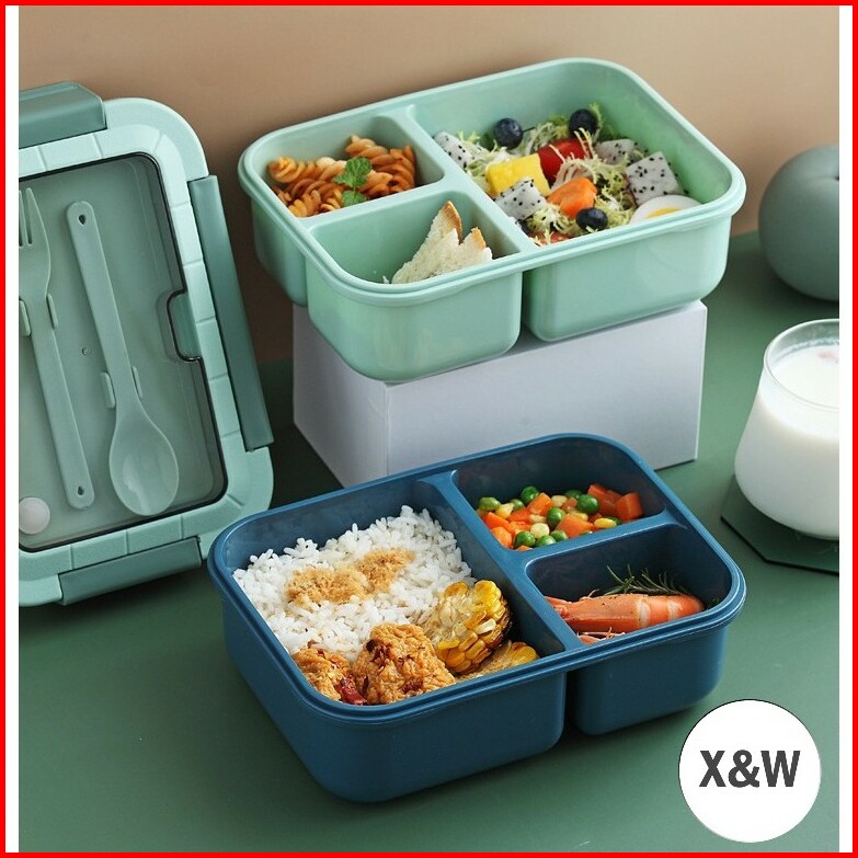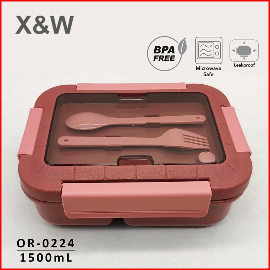 X W Lunchbox Set 3 Sekat Or-0224 Microwavable 1500 Ml Anti Tumpah Free Sendok Garpu Bpa Free