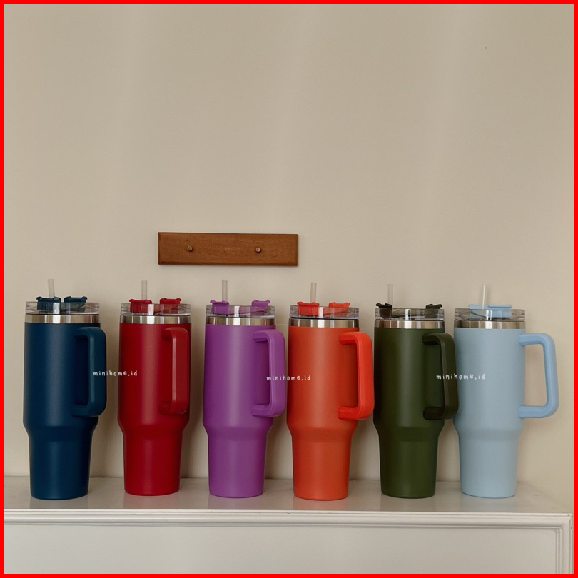 Minihome Bambi 1200ml Tumbler Jumbo Mobil Botol Minum Lucu Aesthetic Tumblr Gelas Kopi Cangkir Teh Minimalis Warna Paste