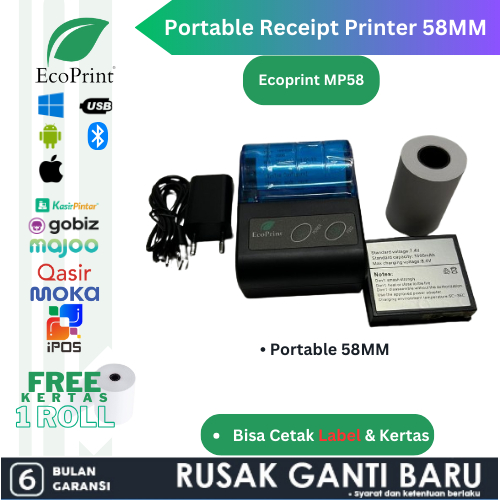 ECOPRINT Printer Thermal Portable Battery Bluetooth MP-58C RPP02N / printer bluetooth / printer epson / printer epson l3