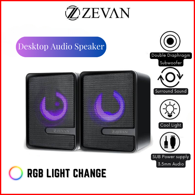 Zevan Speaker Komputer Pc Desktop Audio Gaming S3 Rgb Suara Laptop Komputer Usb With Led Rgb Colorfull Lights