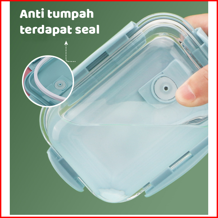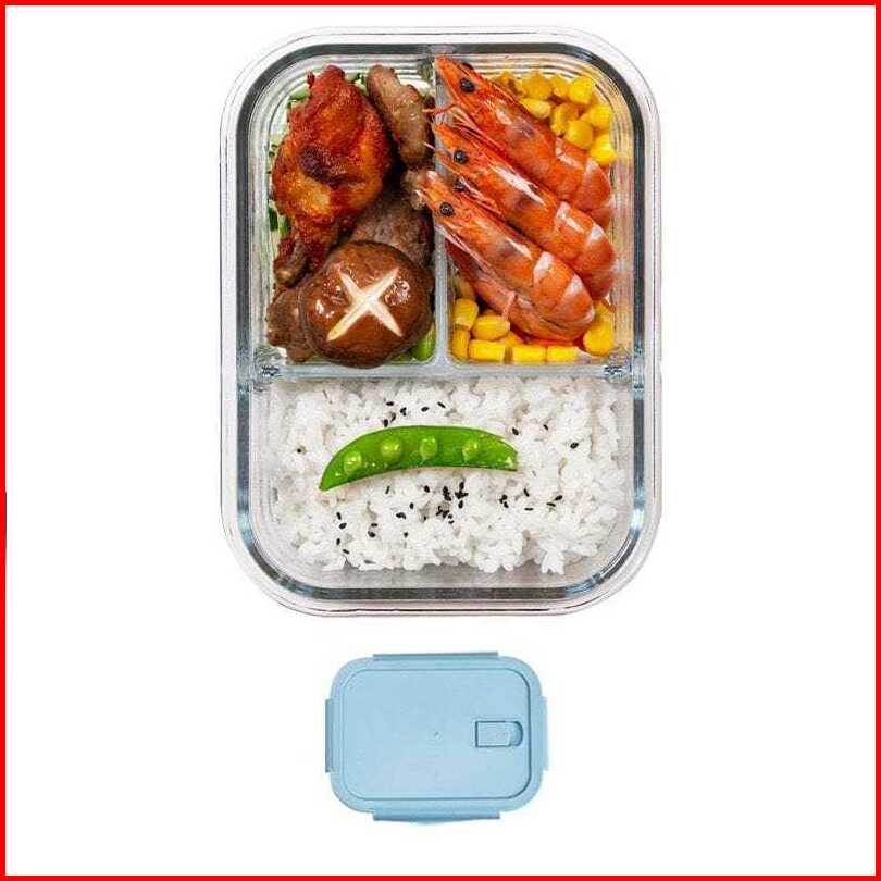 Ready Kotak Makan Lunch Box Kaca Kotak Tempat Penyimpanan Makan Bahan Kaca Microwave Oven Safe Bersekat