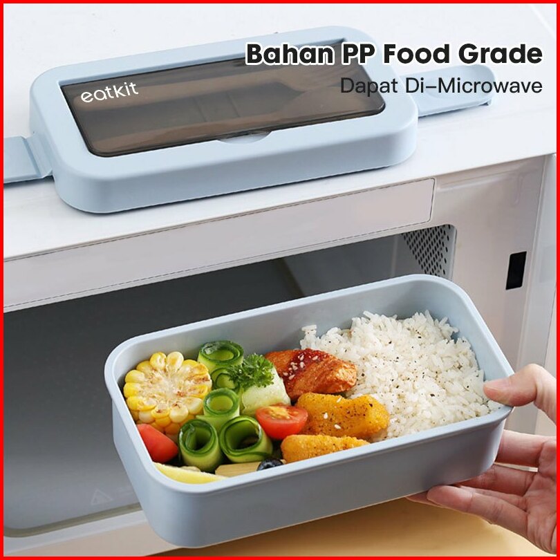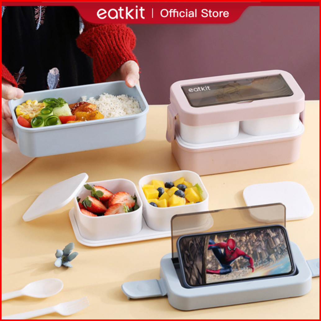 Eatkit Lunch Box Set 2 Susun 1250ml Kotak Bekal Bento Anti Tumpah Sauce Cup Free Sendok Garpu