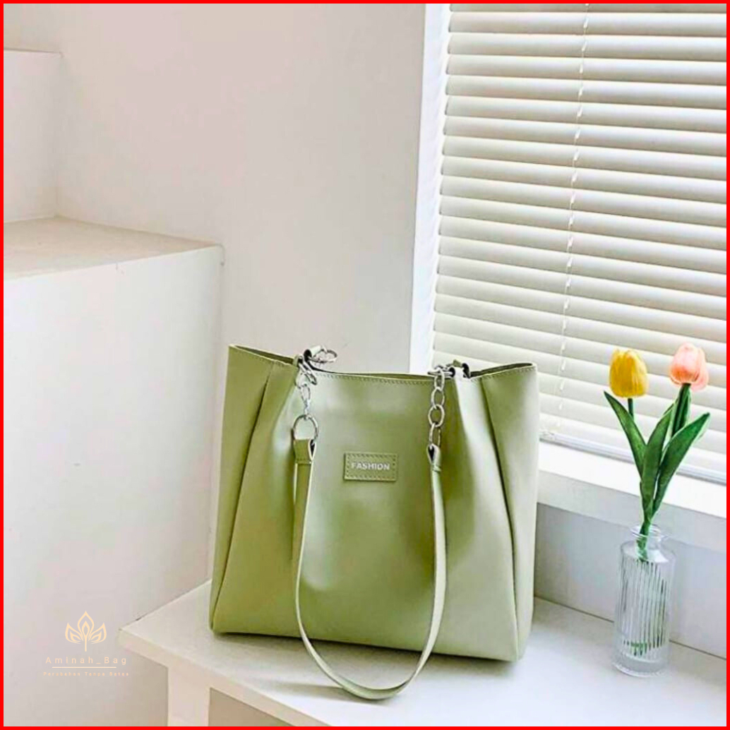Aminah Tas Totebag Tas Wanita Kapasitas Besar Pu Kulit Polos Sederhana Tas Bisnis Kantor