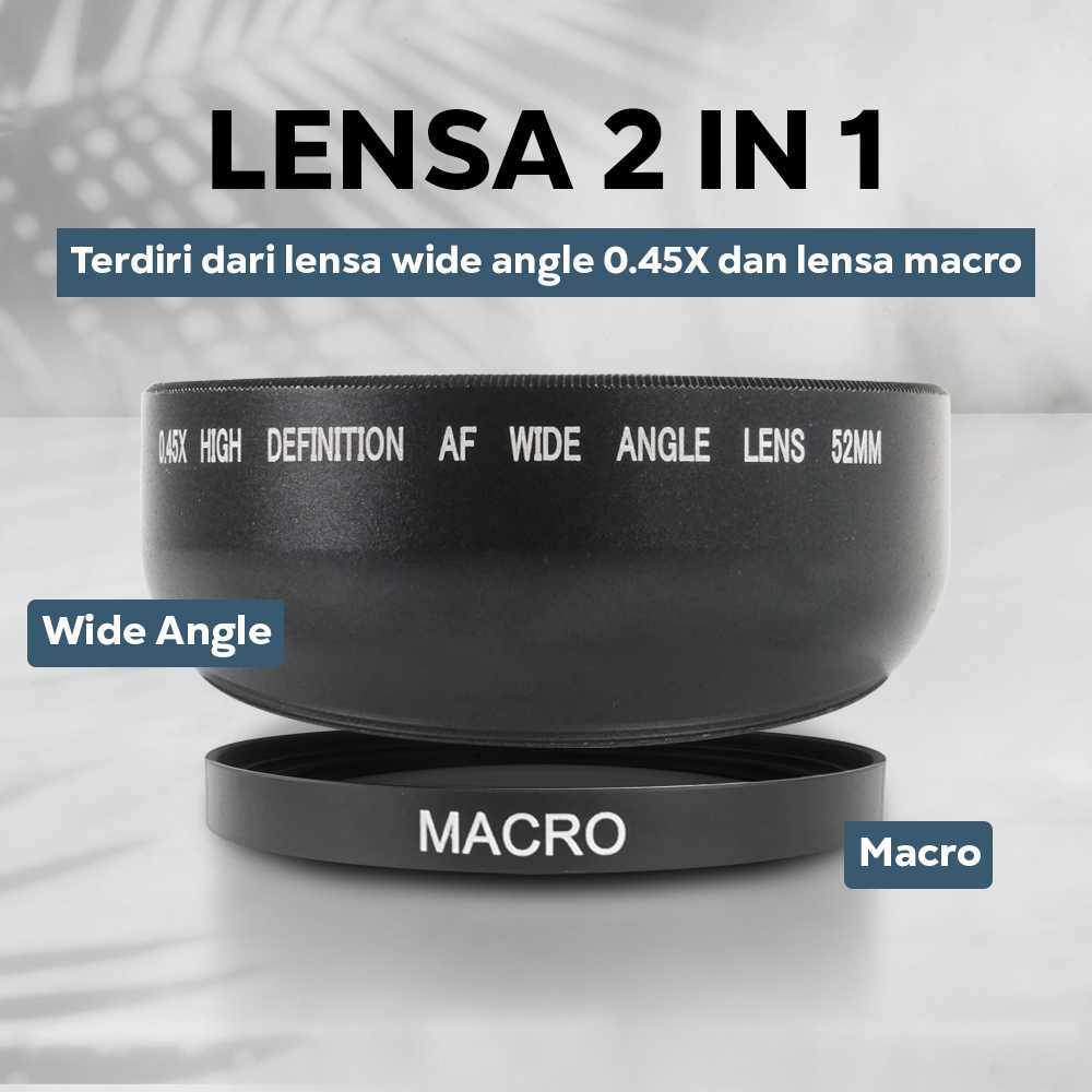 Lensa Wide Angle dan macro Kamera DSLR Canon Nikon Lens 0.45X 52mm