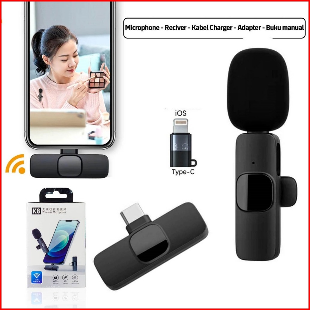 Mic Clip On Mikrofon Wireless 1 2 Microphone K8 1 Mic Type C Usb Lightning K9 Type C 2 Mic Premium Microphone Wireless 2
